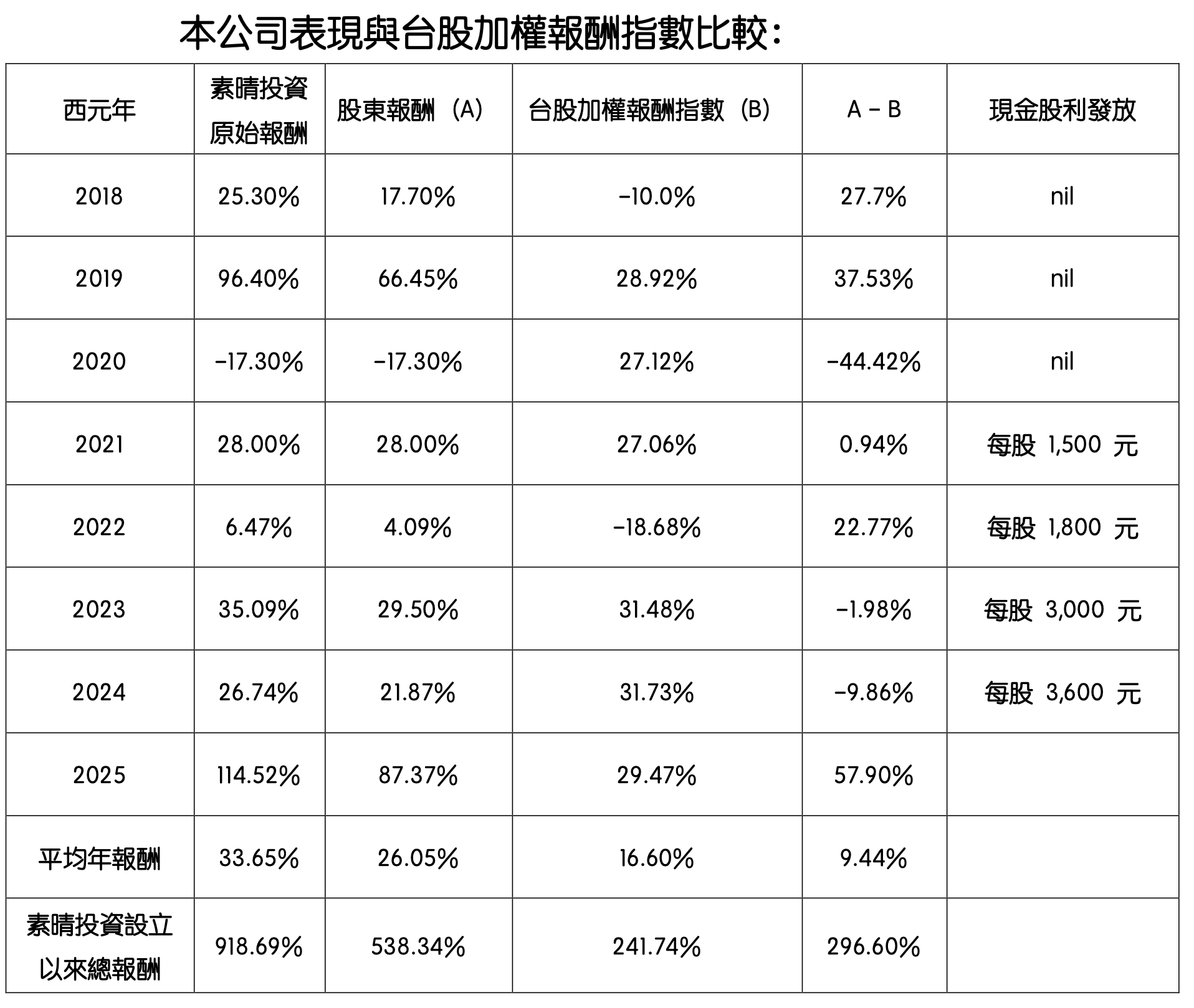 本公司於2025年的表現如下: